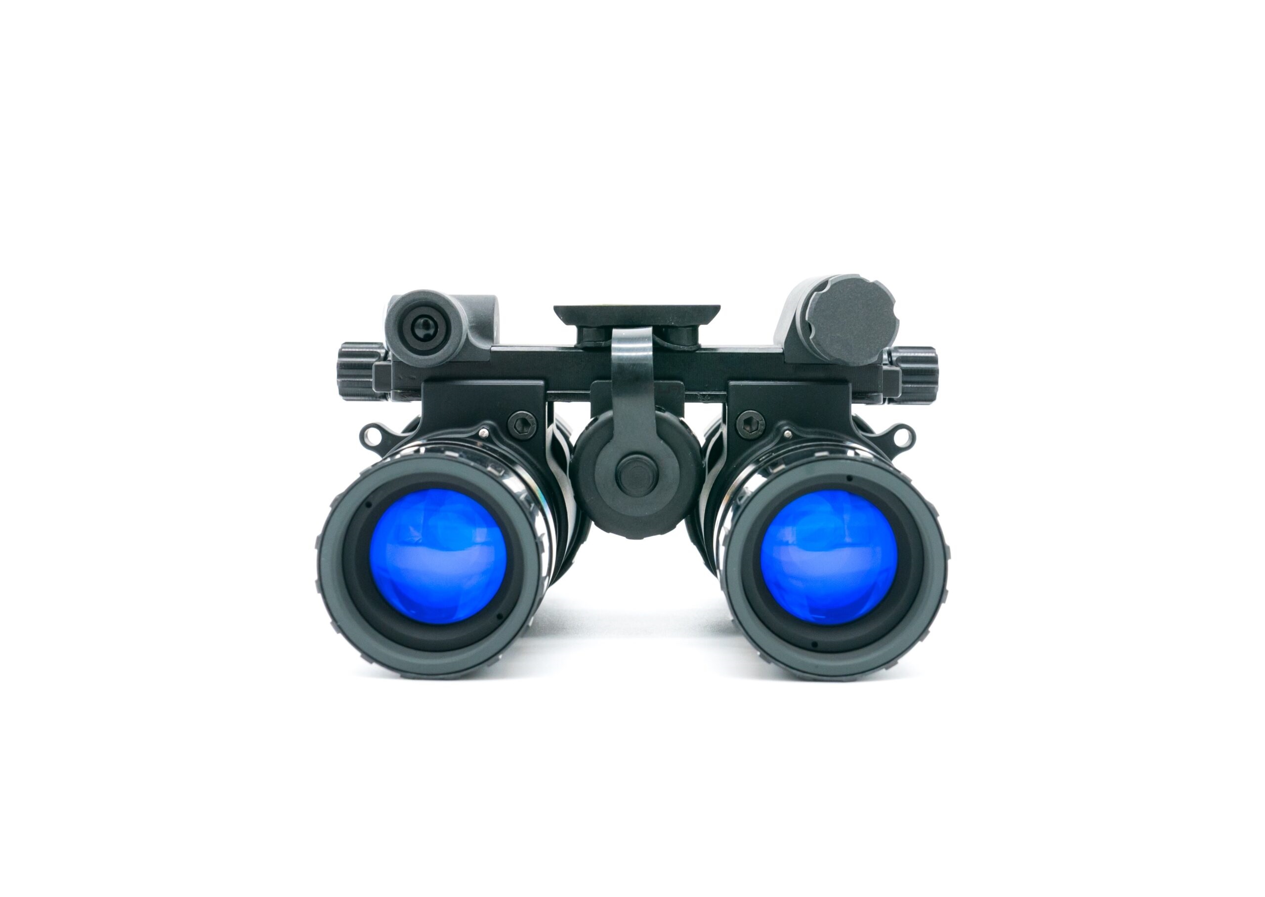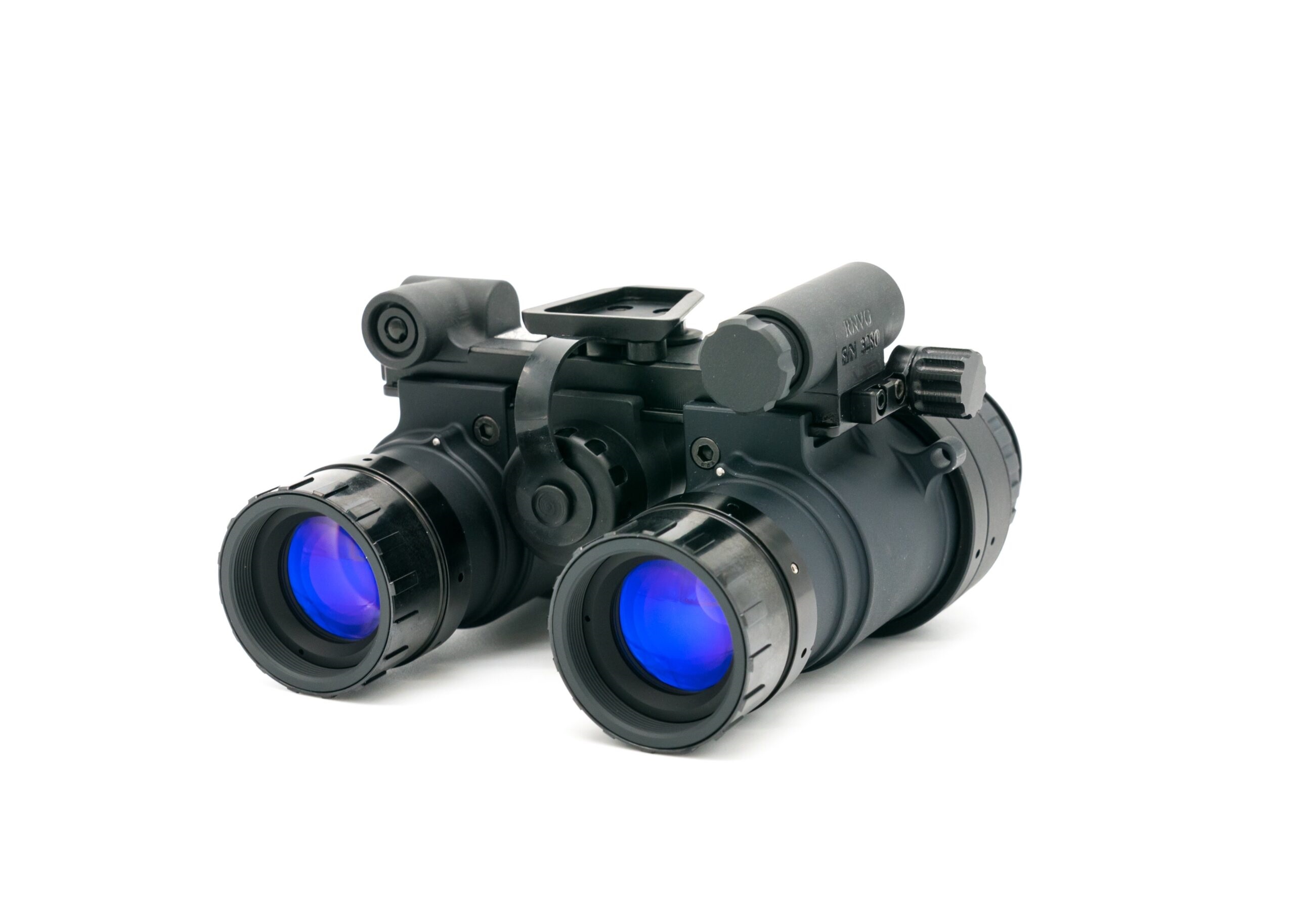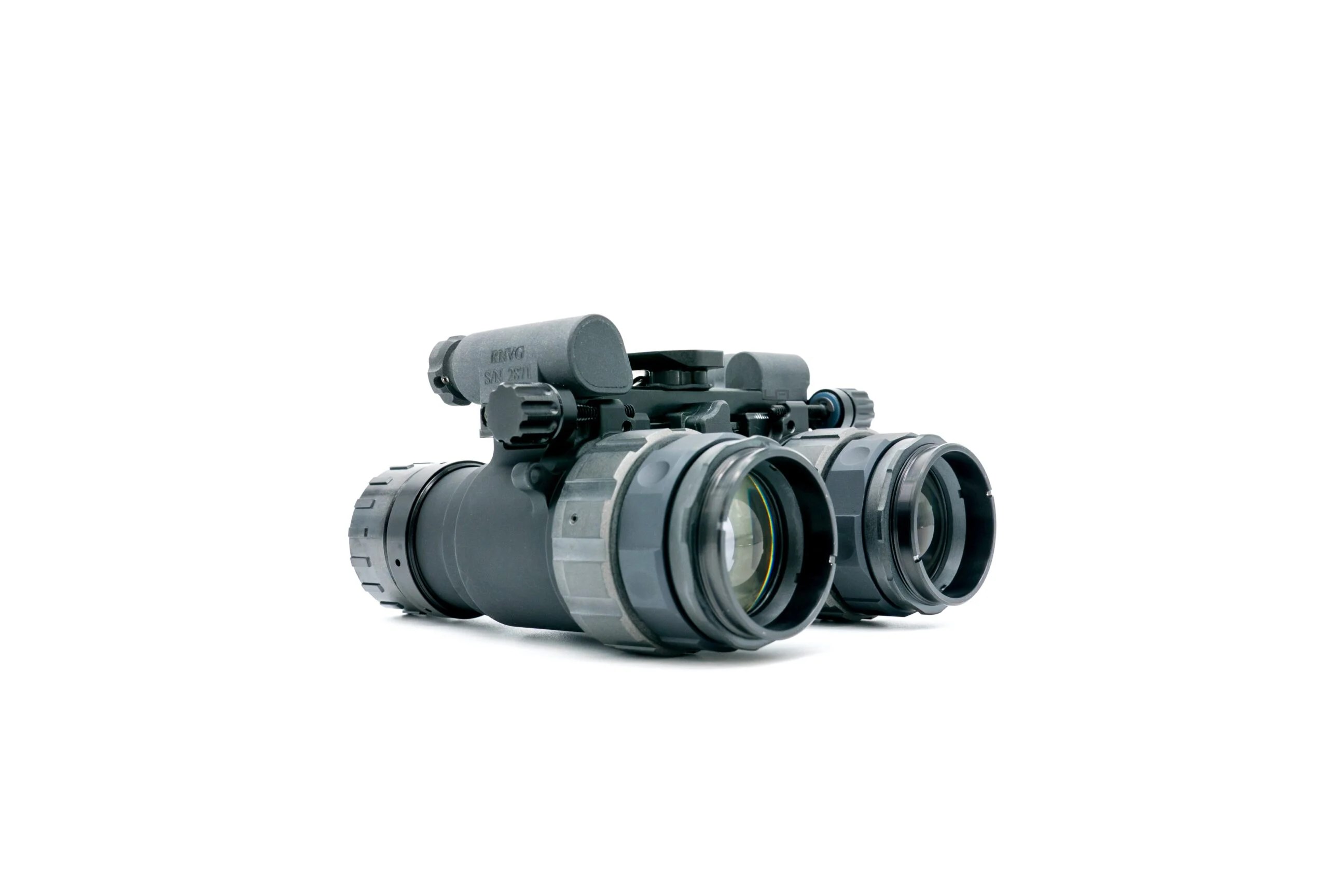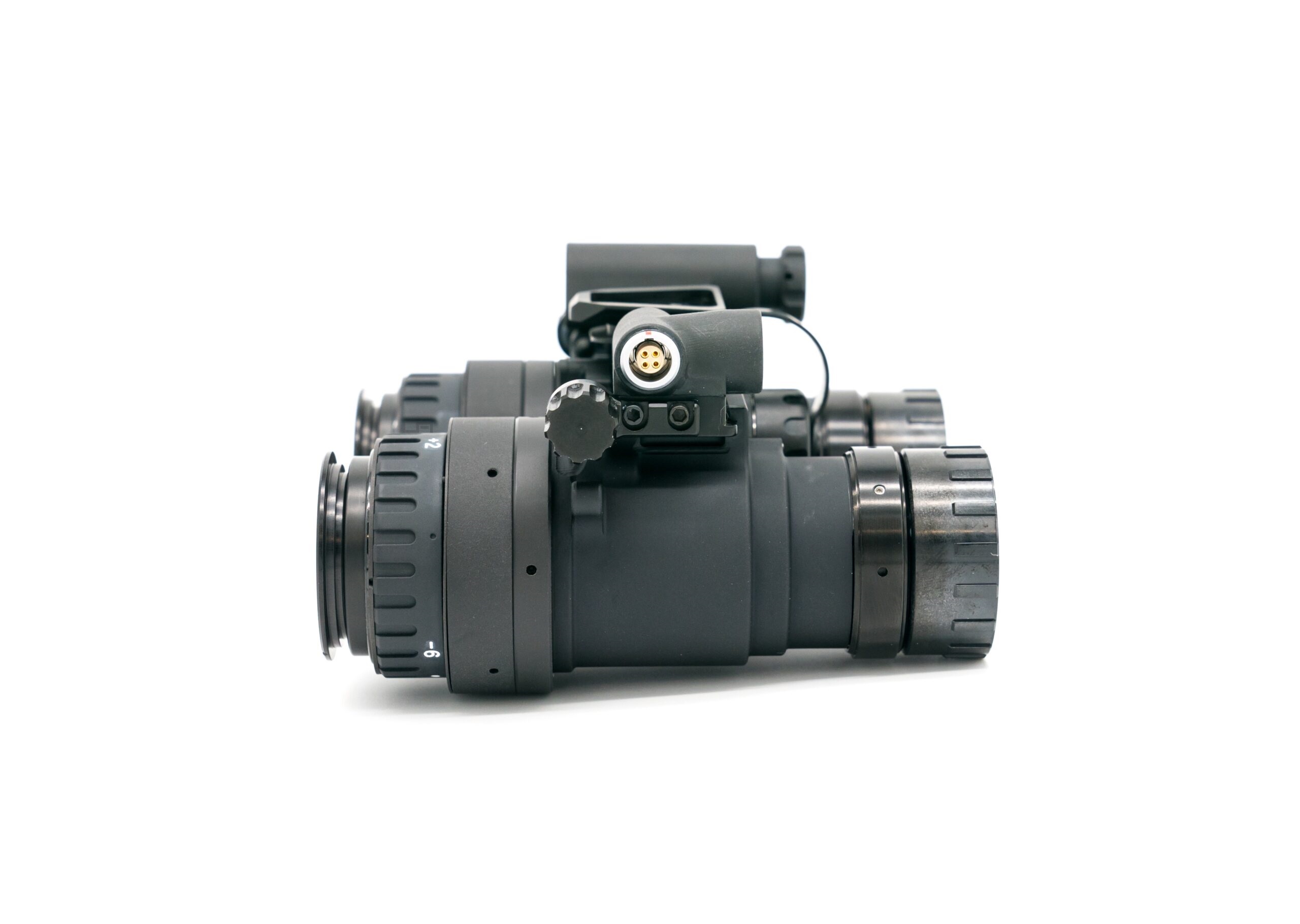 The RNVG (Ruggedized Night Vision Goggle) is a fixed-bridge binocular night vision system built from 7075 aircraft-grade aluminum for exceptional strength and impact resistance. It includes an onboard IR illuminator and an auxiliary power connector. Interpupillary distance (IPD) is adjusted via side screws, allowing precise alignment that stays locked in place for quick, consistent deployment. The goggle can be powered by a single CR123 battery or an external battery pack via a LEMO connector, offering flexible power options while maintaining a rugged, reliable design. ---Characteristics