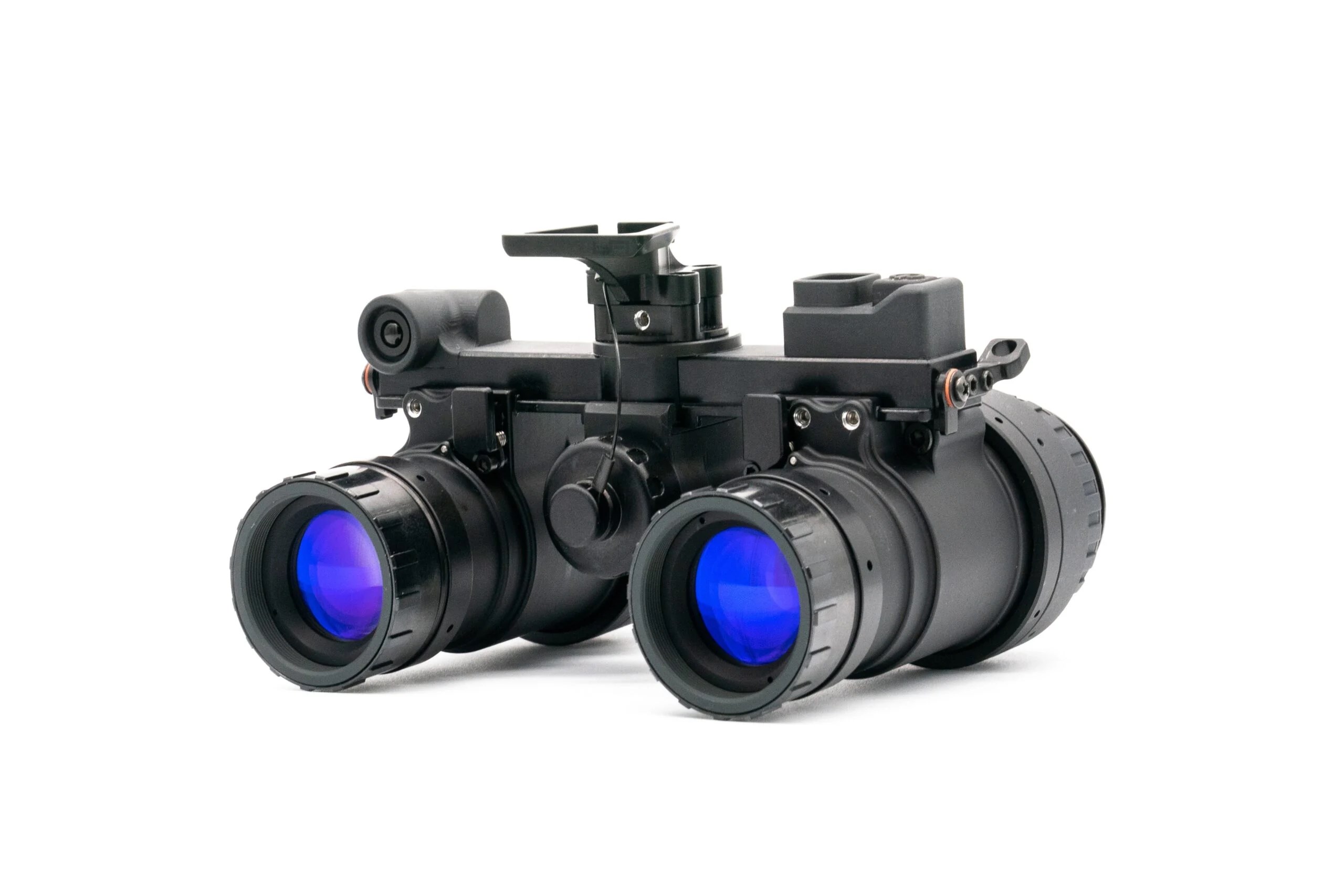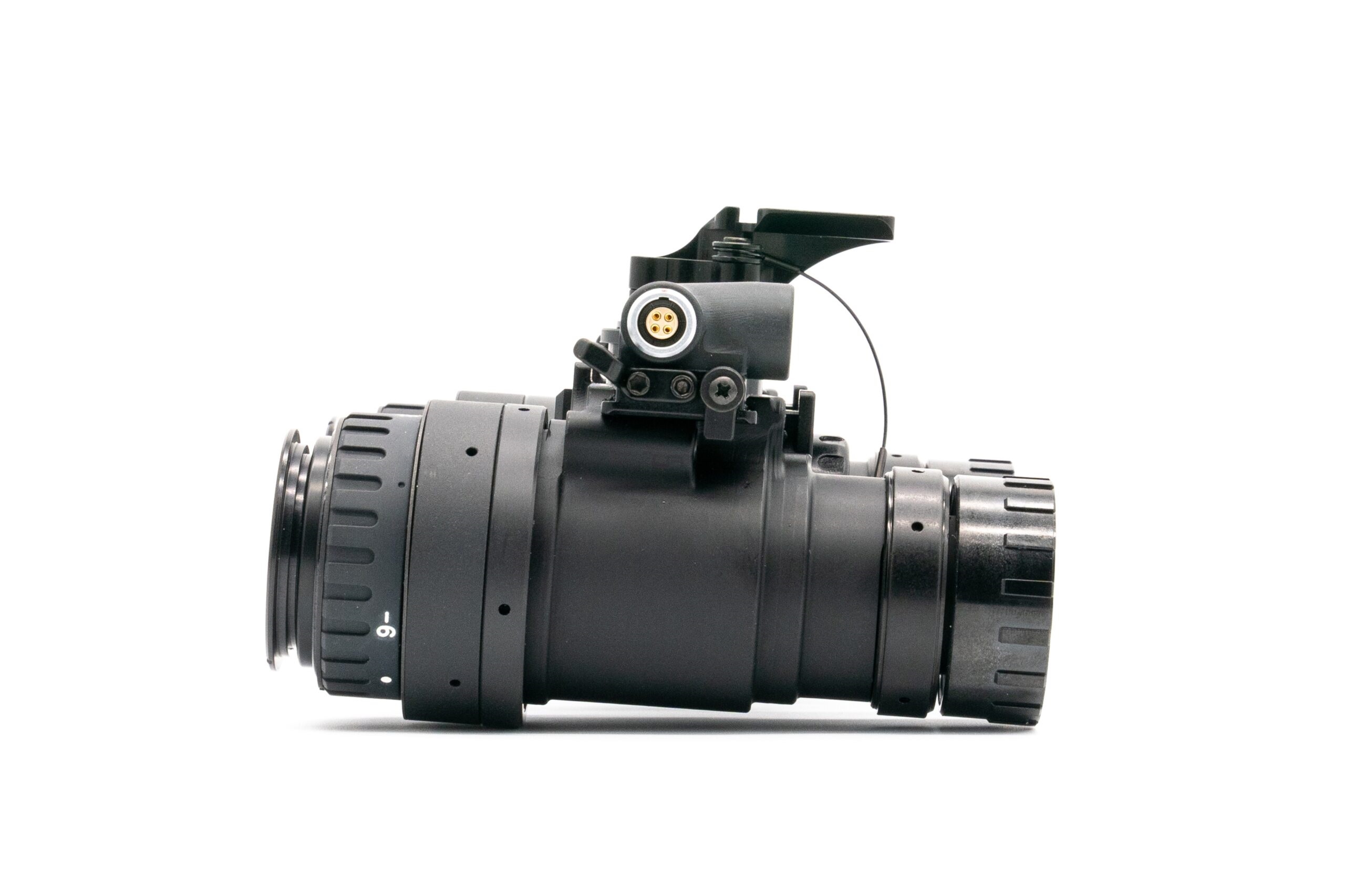 The RPNVG (Ruggedized Panning Night Vision Goggle) is a durable, aircraft-grade aluminum binocular night vision system featuring an onboard illuminator and flexible power options via CR123 battery or LEMO-compatible external pack. Its standout feature is the articulating optical pods, which can pan outward to adjust the field of view from 40° to 65°, giving users a wider perspective with less head movement. The pods can also detach and operate as independent monoculars with a separate battery assembly, adding modularity and versatility. This combination of rugged construction, adjustable FOV, and flexible power makes the RPNVG highly adaptable for demanding night vision operations. ---Characteristics