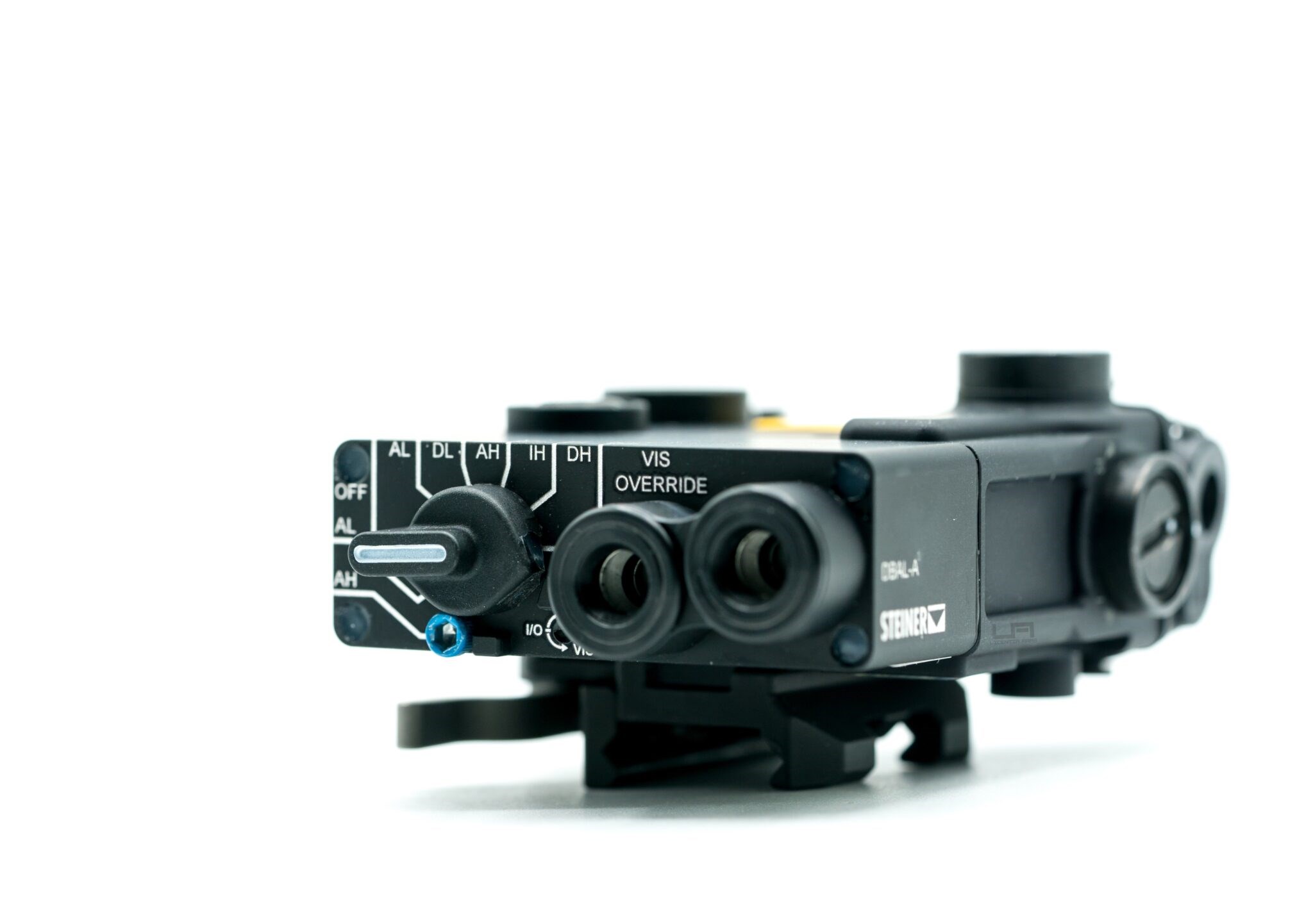 The Steiner DBAL-A3 is a compact dual-beam aiming laser that combines a focusable IR illuminator, IR aiming laser, and visible green laser in one unit. The visible and IR lasers are slaved together, allowing easy daytime zeroing—adjust one, and both stay aligned.